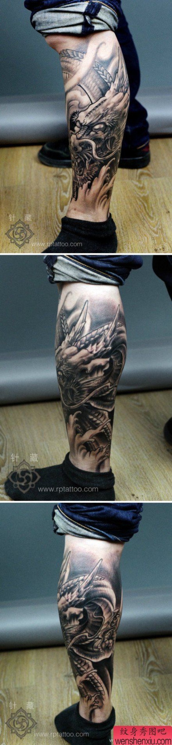 龙纹身手稿_一组老传统黑灰龙手稿纹身图案