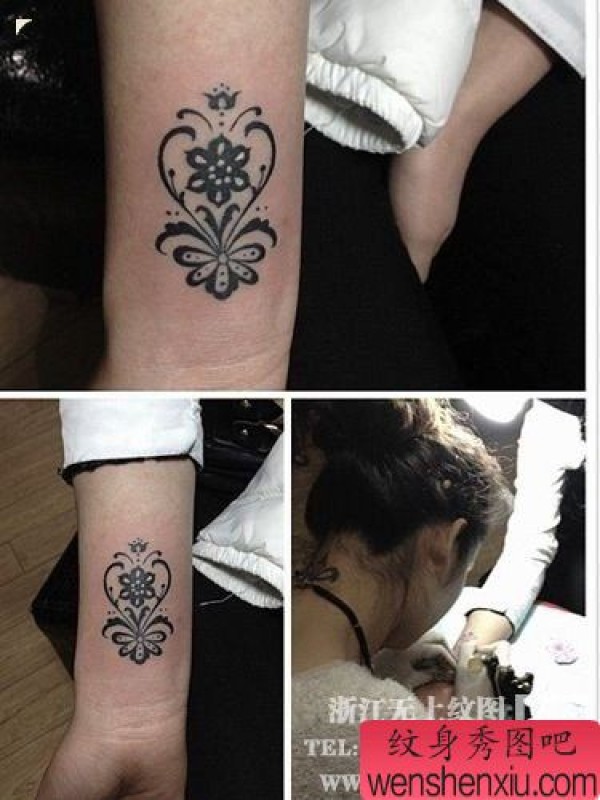 美女手臂时尚精美的图案爱心花卉纹身图案