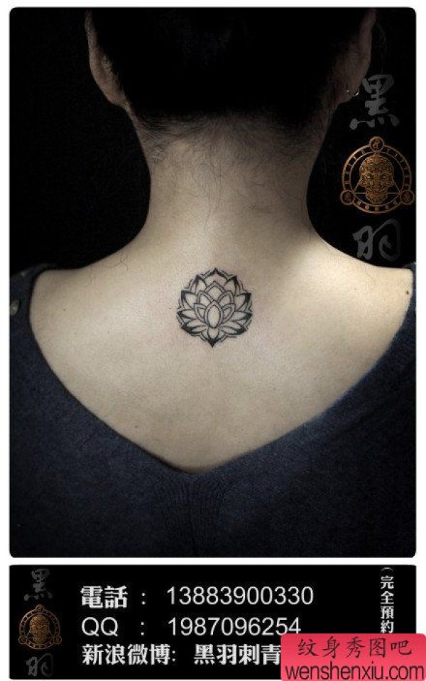 女生颈部精美时尚的图腾小莲花纹身图案