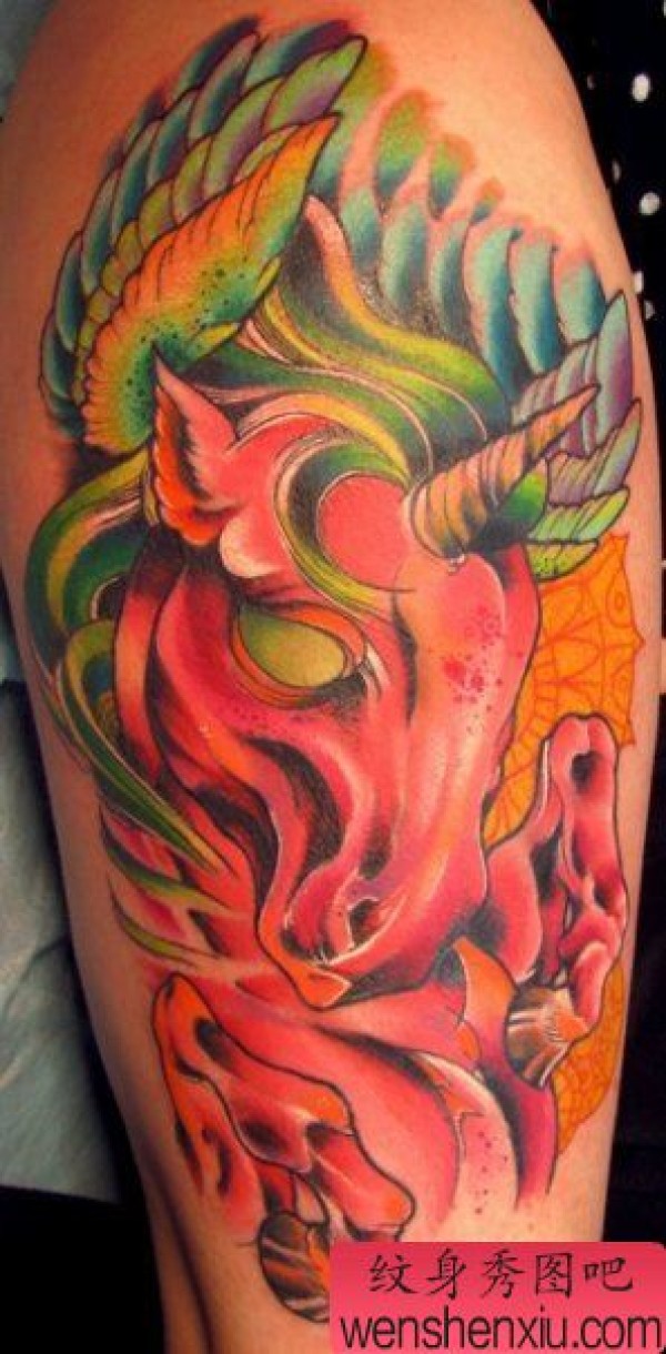手臂时尚帅气的欧美彩色独角兽纹身图案