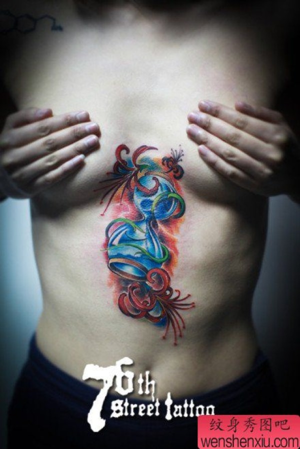 美女腹部漂亮时尚的沙漏彼岸花纹身图案