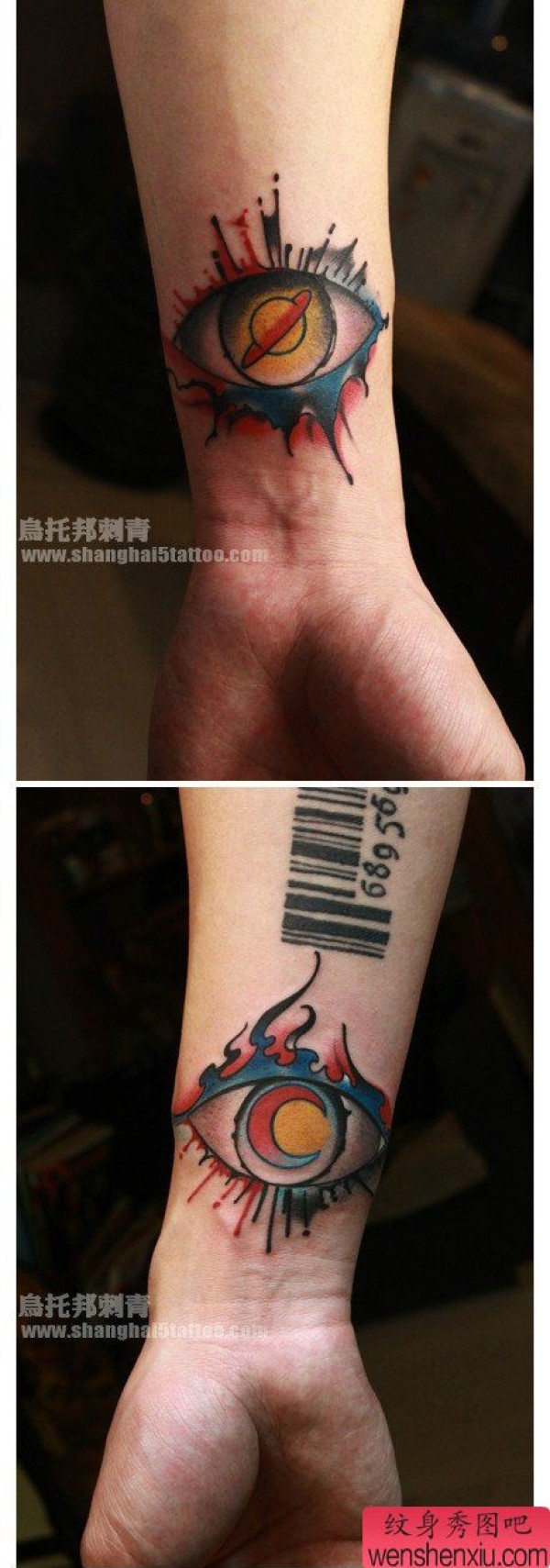 手腕时尚精美的情侣星球纹身图案