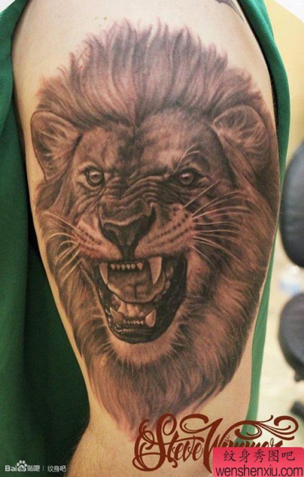 霸气经典的男士手臂狮头纹身图案