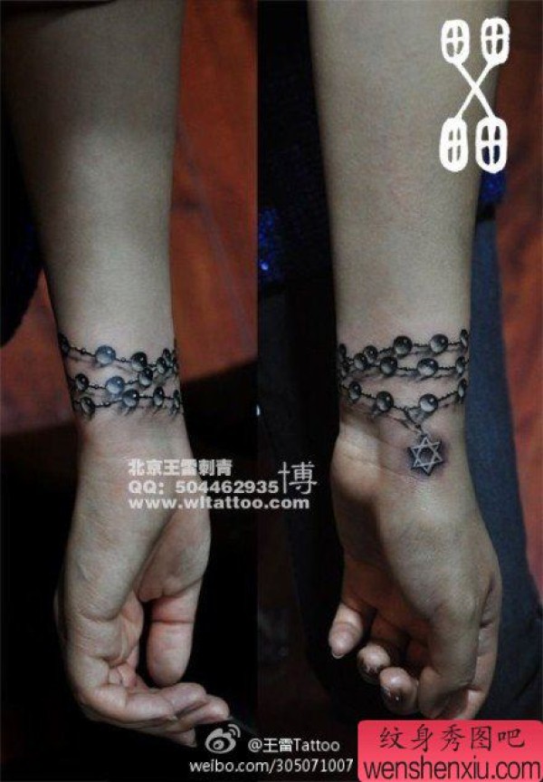 女生手腕精美时尚的手链纹身图案