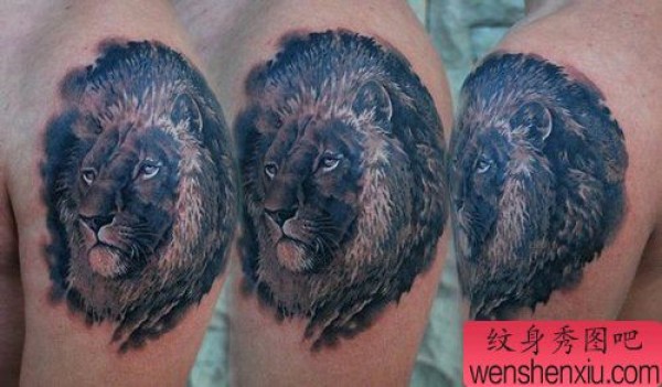 男士手臂帅气经典的狮头纹身图案