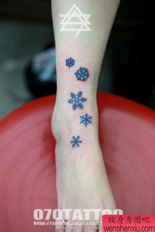 女生脚腕处时尚时尚的彩色雪花纹身图案