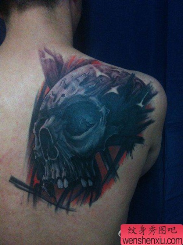 男生肩背超酷帅气的欧美骷髅纹身图案