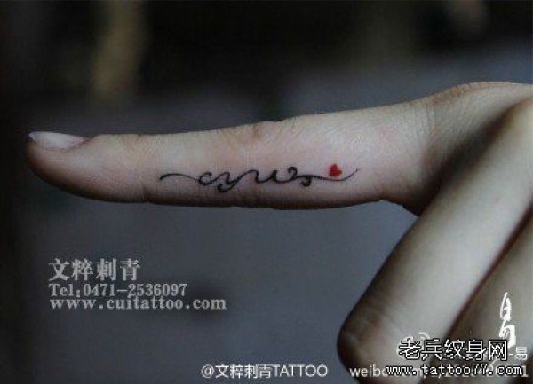 女生手指小巧精美的字母藤蔓纹身图案