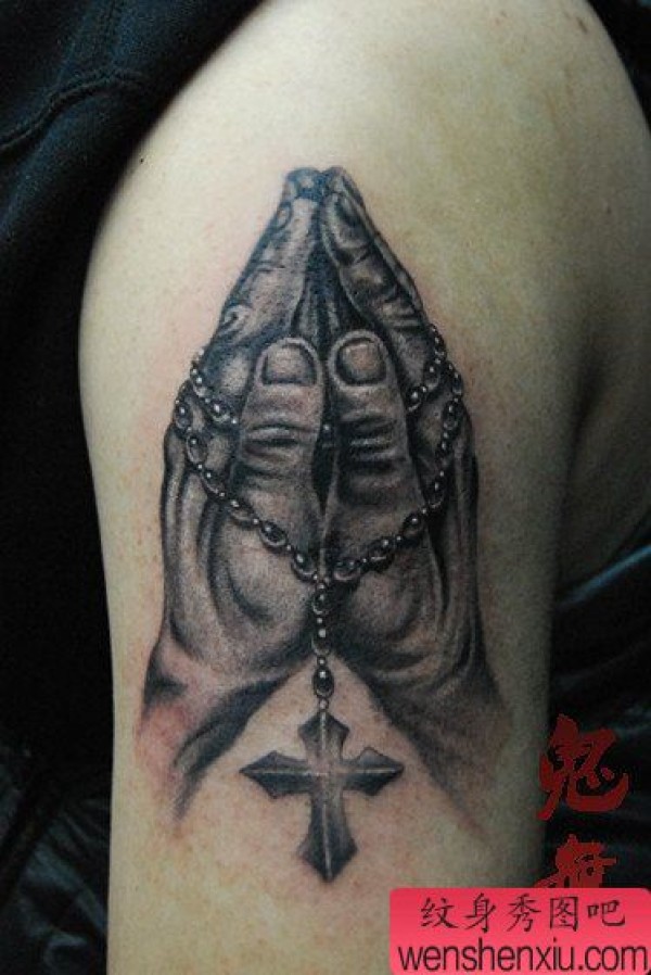 男士手臂时尚精美的祈祷之手纹身图案