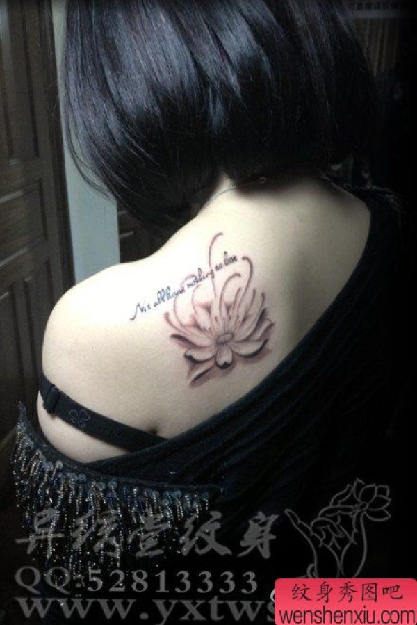 美女肩背唯美优雅的莲花纹身图案