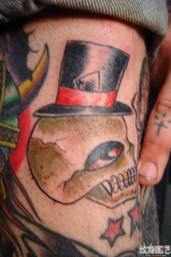 戴黑色礼帽的骷髅头纹身