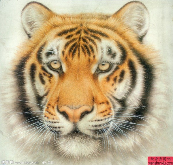 纹身图吧为纹身爱好者分享的霸气的老虎头纹身手稿图案之二