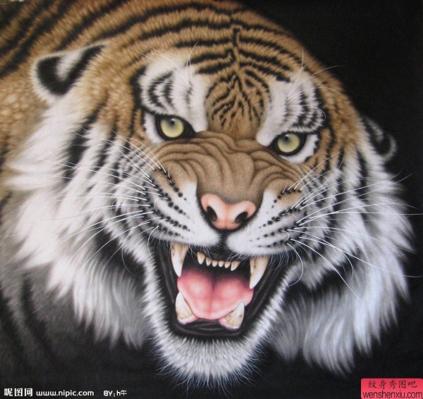 纹身图吧为你分享几款霸气的虎头纹身图案手稿图片之一
