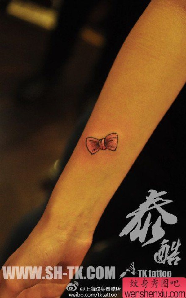 女孩子手臂时尚小巧的蝴蝶结纹身图案