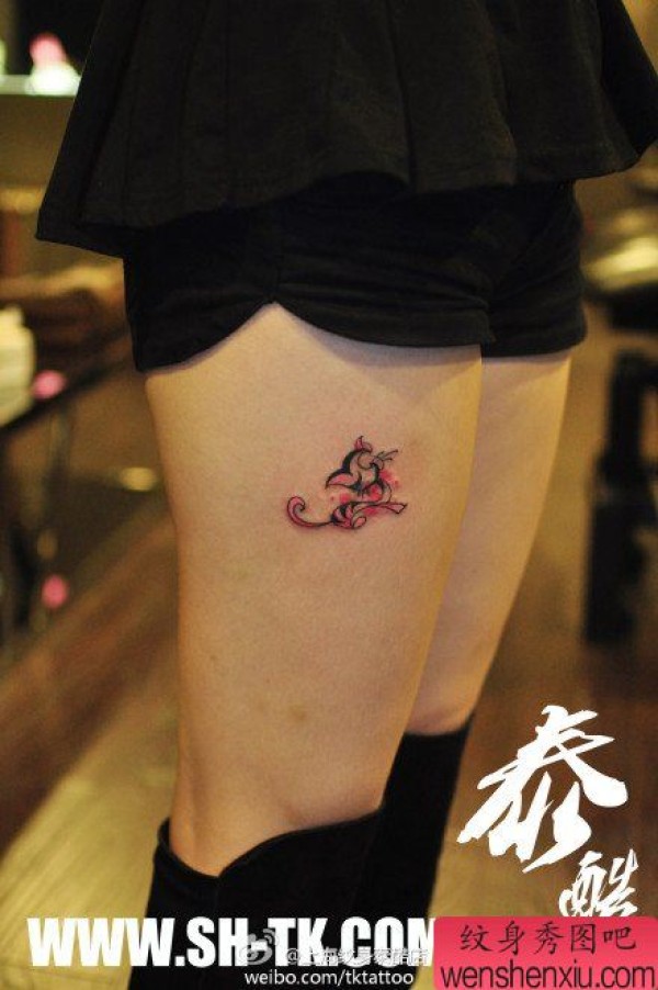 女生腿部小巧可爱的图腾猫咪纹身图案