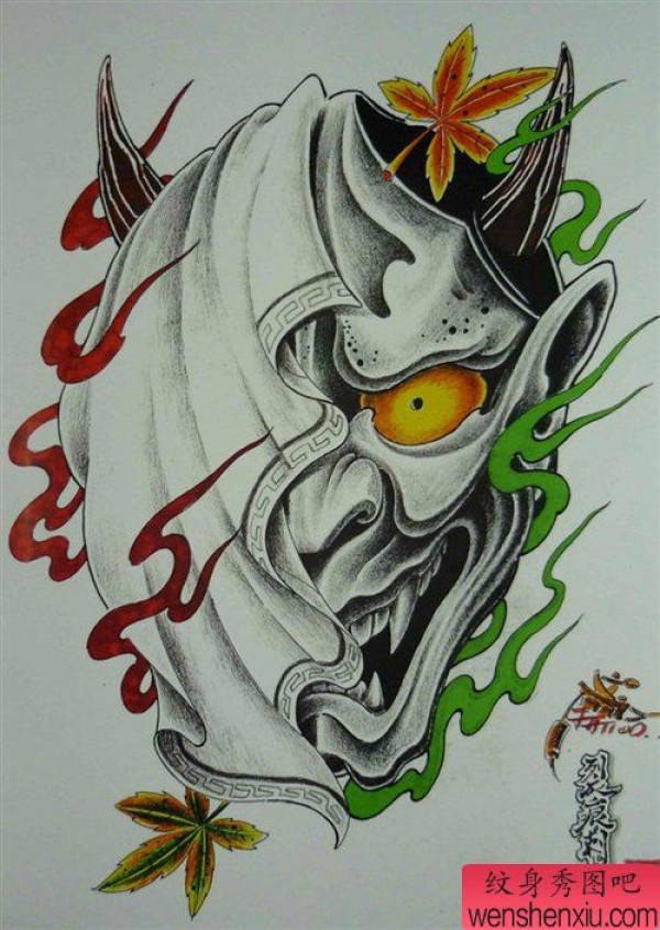 能面万媚纹身手稿_52张日式能剧面具纹身手稿图案素材欣赏