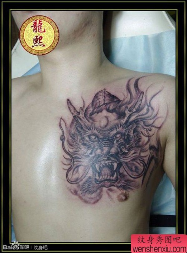 霸气的男生胸部龙头纹身图案
