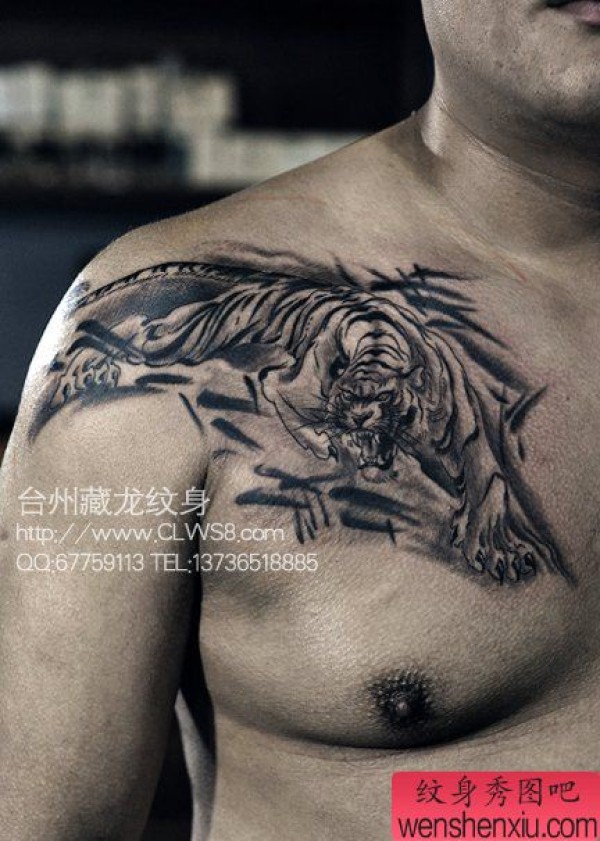 男生前胸帅气超酷的下山虎纹身图案