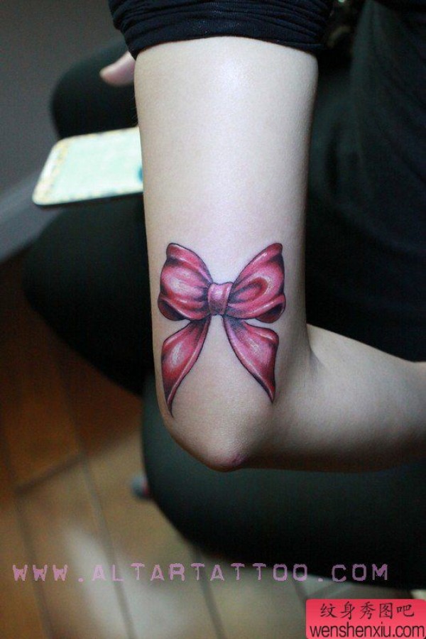 时尚时尚的女生手臂蝴蝶结纹身图案