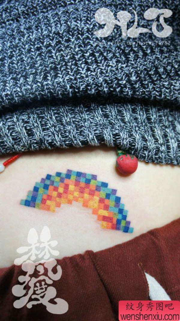 女生腹部精美漂亮的马赛克彩虹纹身图案