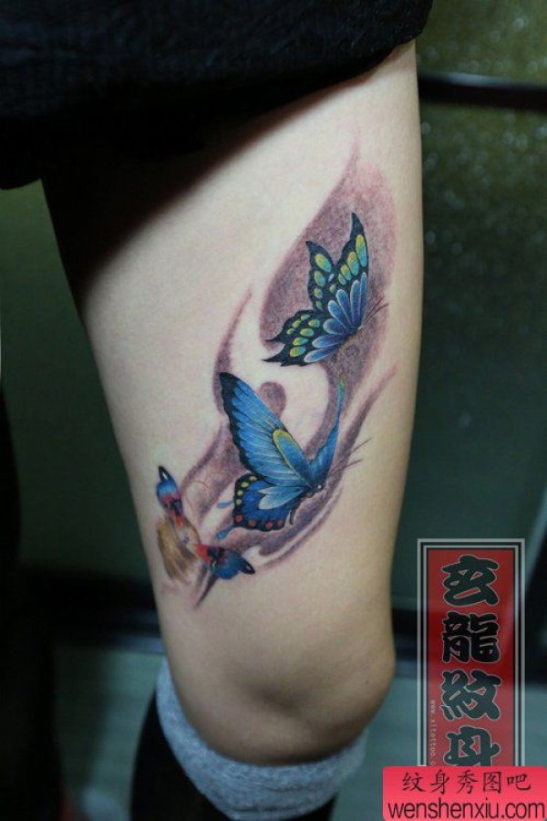 女生腿部漂亮时尚的蝴蝶纹身图案