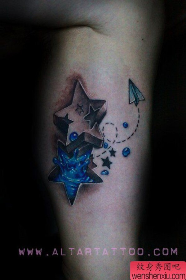 时尚精美的烙印与浮雕的五角星纹身图案