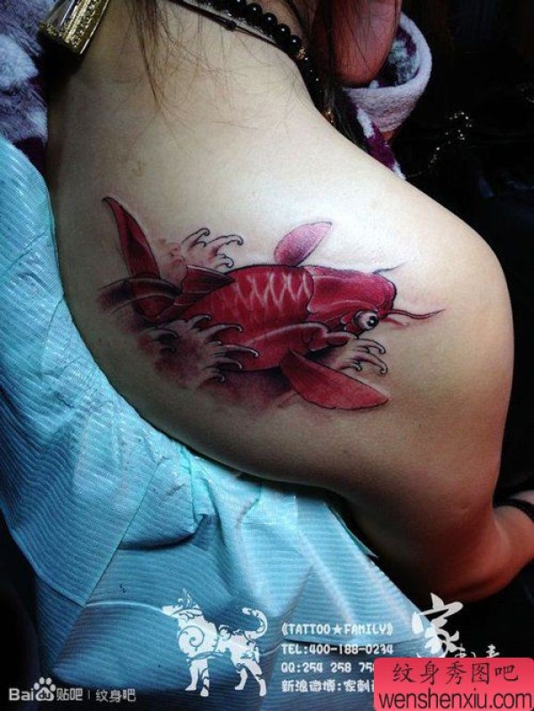 美女肩背时尚时尚的鲤鱼纹身图案