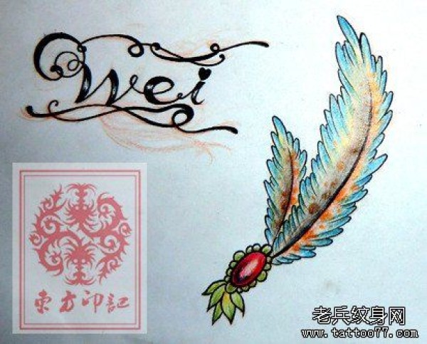唯美时尚的一张羽毛纹身手稿