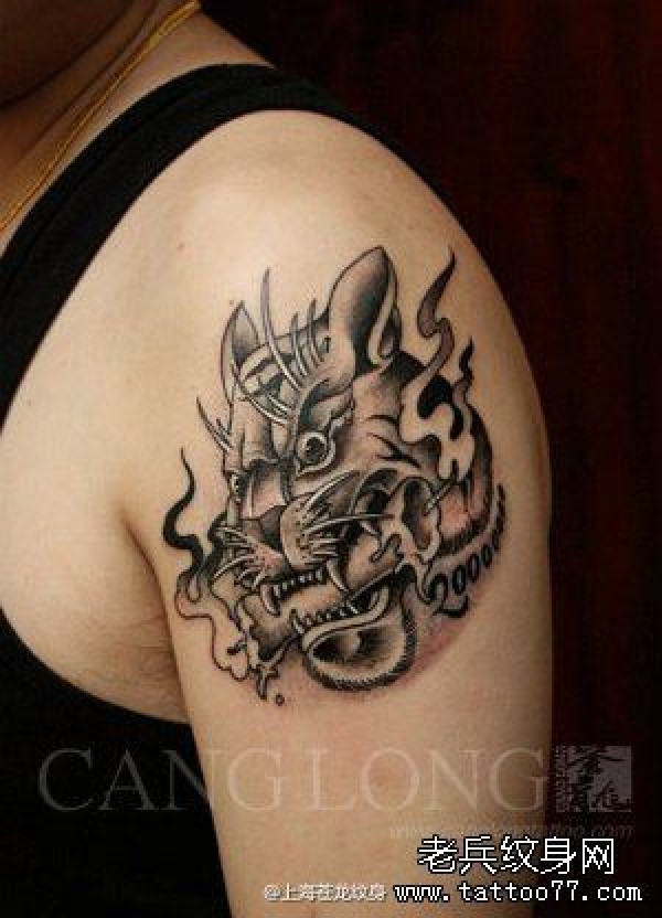 龙纹身手稿_一组老传统黑灰龙手稿纹身图案