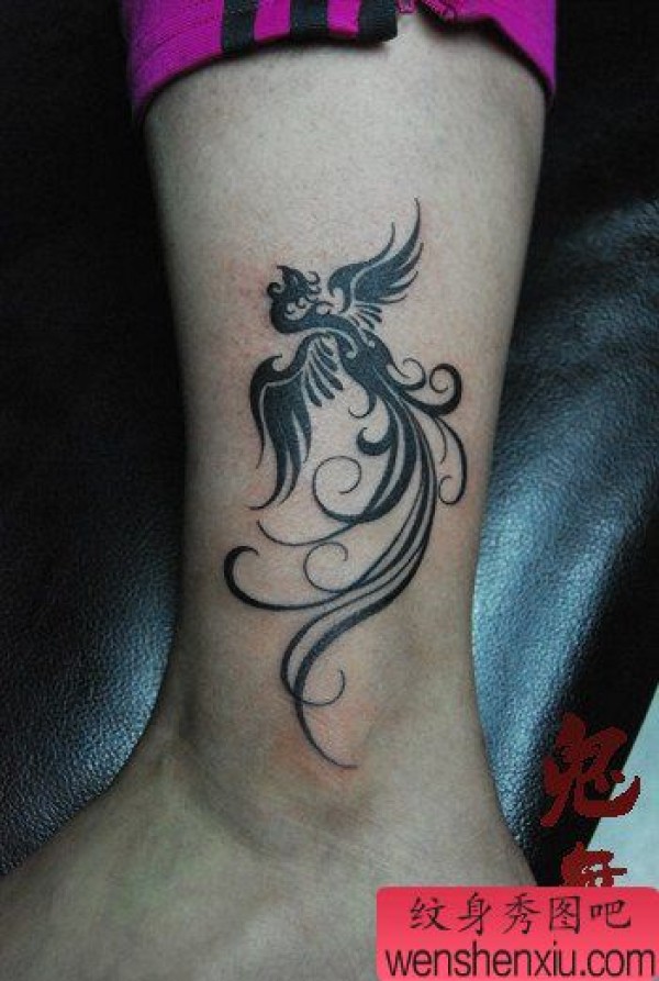 女生腿部唯美时尚的图腾凤凰纹身图案
