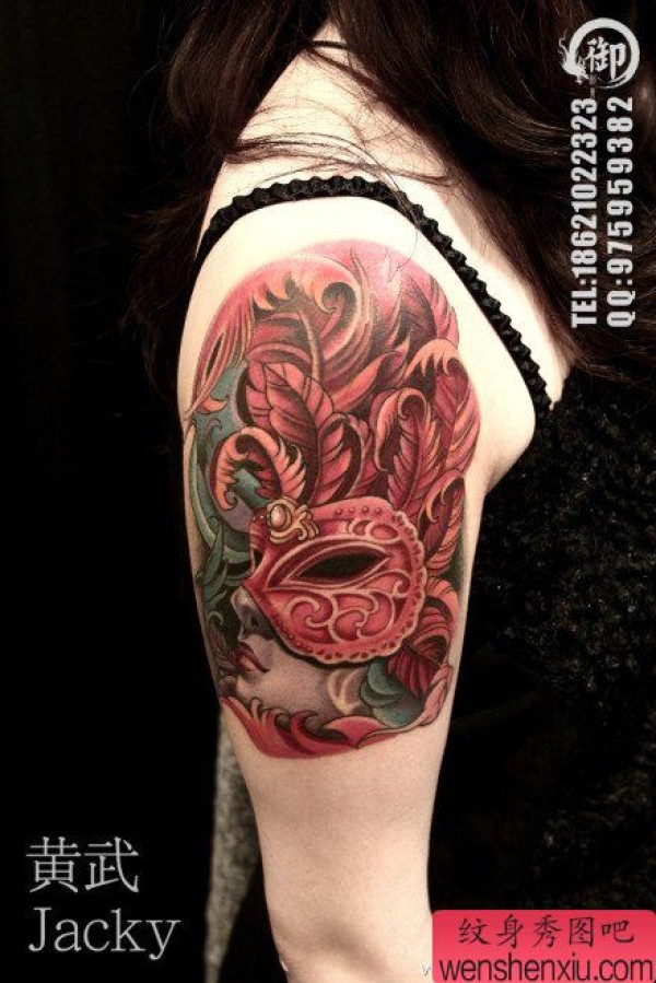 手臂漂亮的威尼斯面具纹身图案