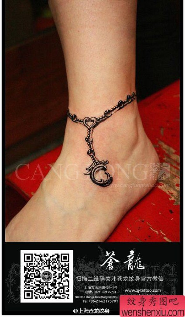 美女脚腕时尚精美的脚链纹身图案