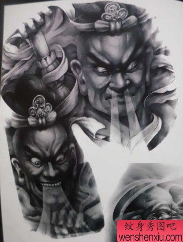 能面万媚纹身手稿_52张日式能剧面具纹身手稿图案素材欣赏