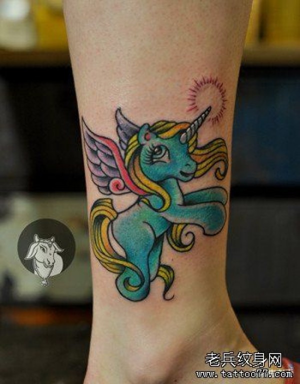 女生腿部时尚小巧的独角兽纹身图案