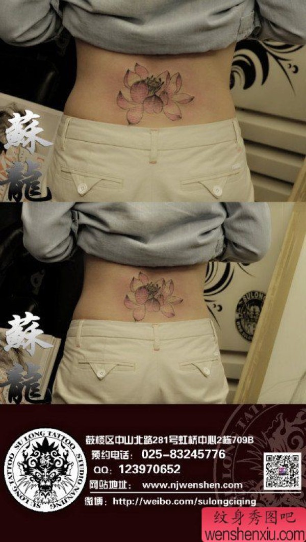 美女腰部漂亮时尚的水墨莲花纹身图案