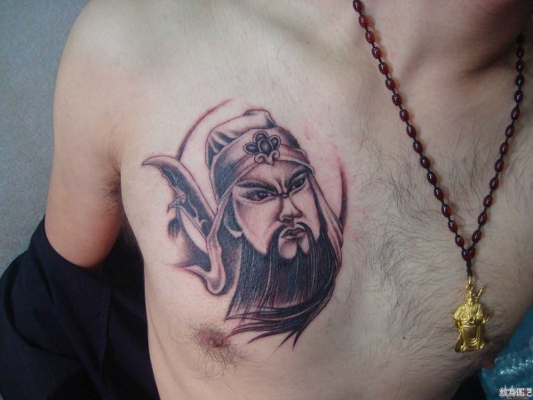 咸阳纹身眉飞色舞 作品胸前关公
