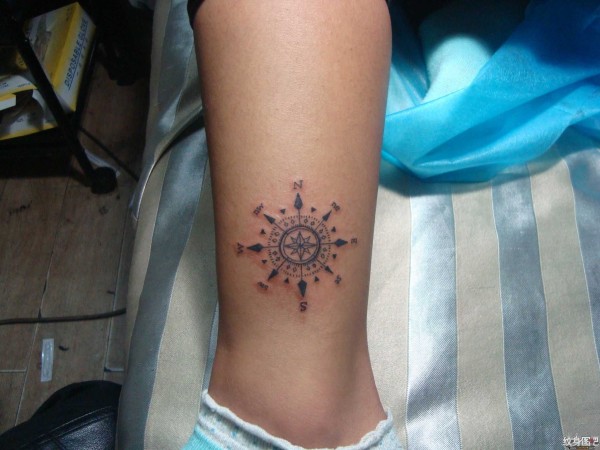 咸阳纹身眉飞色舞 作品小腿指南针