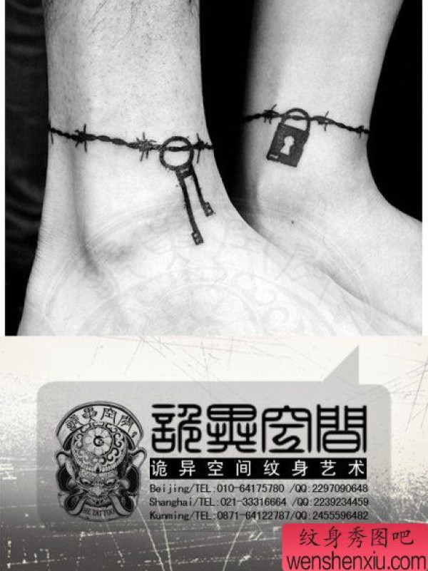 脚腕时尚精美的情侣脚链纹身图案