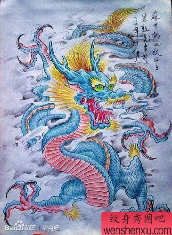 龙纹身手稿_一组老传统黑灰龙手稿纹身图案