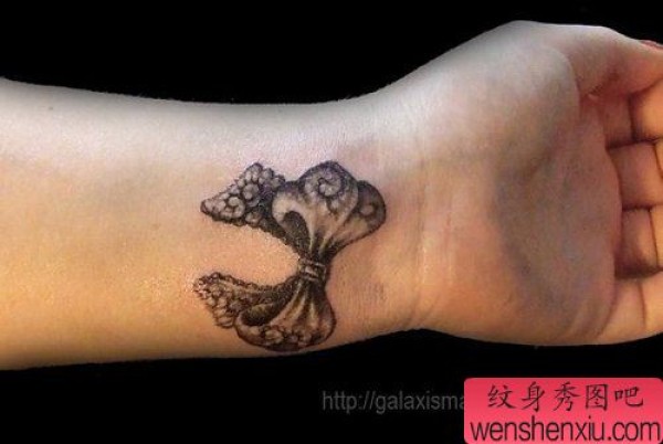 女生手腕小巧时尚的蝴蝶结蕾丝纹身图案