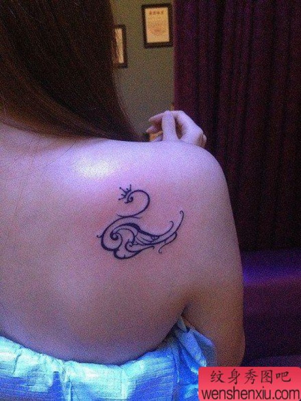 女生肩膀小巧可爱的小天鹅纹身图案