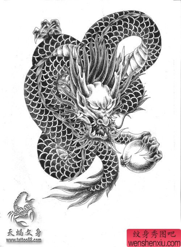 龙纹身手稿_一组老传统黑灰龙手稿纹身图案