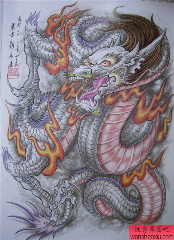 龙纹身手稿_一组老传统黑灰龙手稿纹身图案