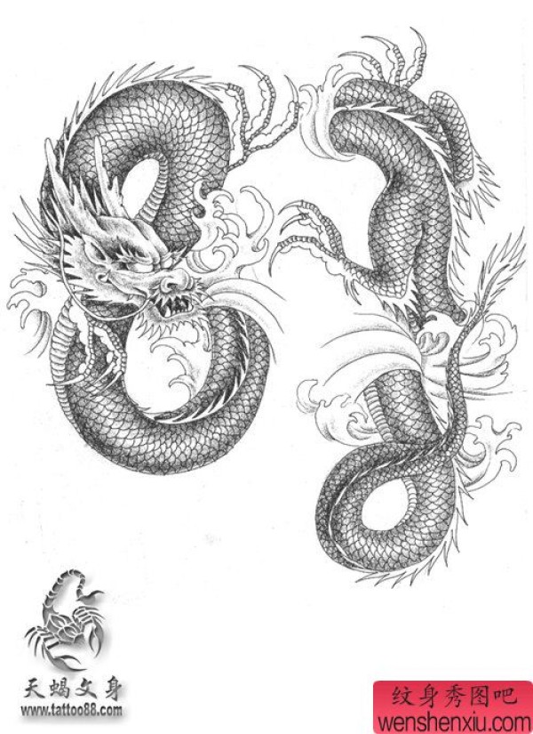 龙纹身手稿_一组老传统黑灰龙手稿纹身图案