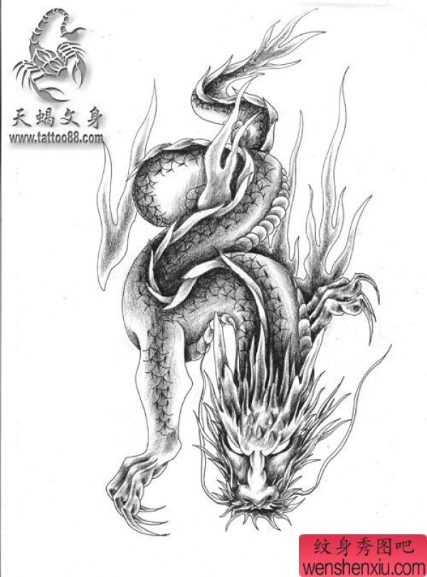 龙纹身手稿_一组老传统黑灰龙手稿纹身图案