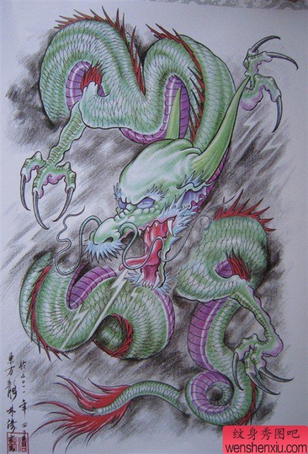 龙纹身手稿_一组老传统黑灰龙手稿纹身图案