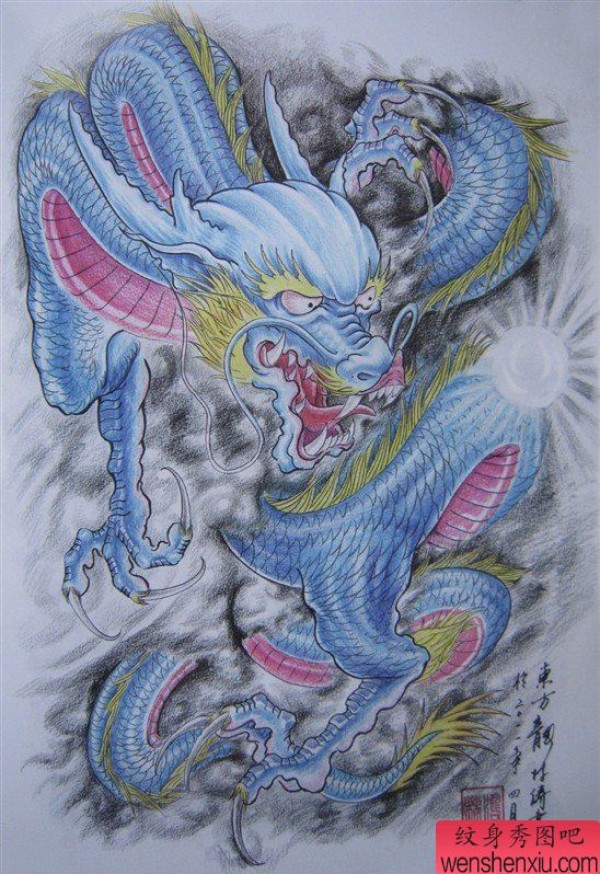 龙纹身手稿_一组老传统黑灰龙手稿纹身图案