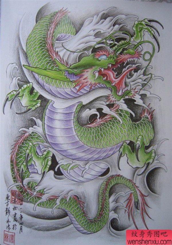 龙纹身手稿_一组老传统黑灰龙手稿纹身图案