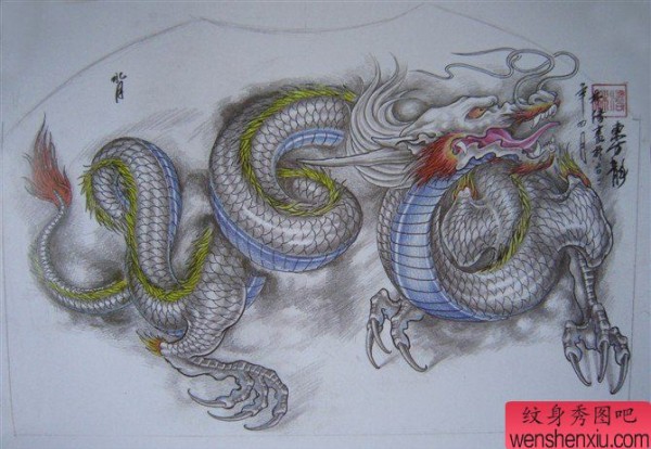 龙纹身手稿_一组老传统黑灰龙手稿纹身图案