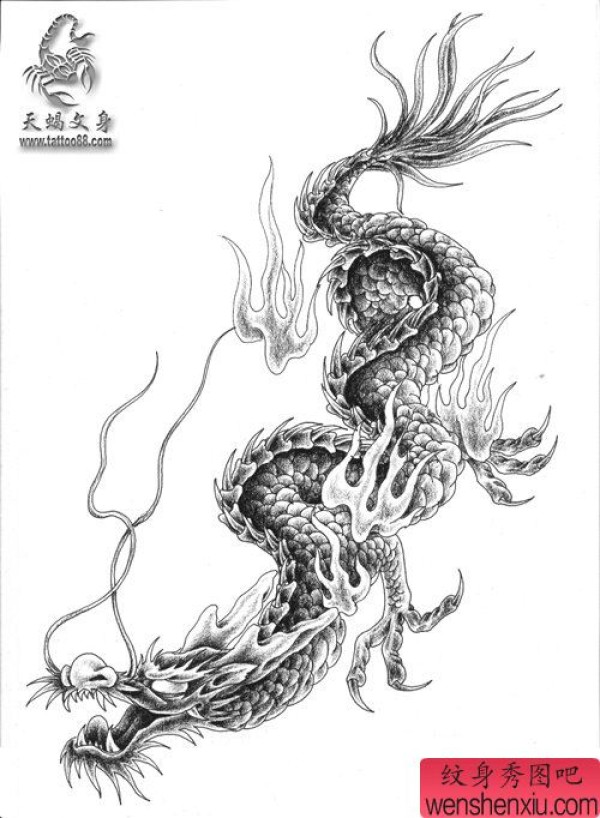 龙纹身手稿_一组老传统黑灰龙手稿纹身图案